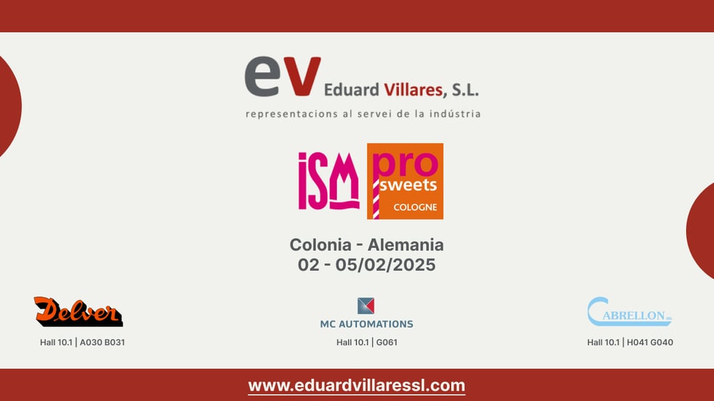 Estaremos como Eduard Villares SL en los stands de nuestras empresas expositoras (Delver, MC Automations y Cabrellon) y trataremos de resolver las dudas que se os presenten sobre temas de cualquiera de nuestras empresas representadas. (HBTS,Dm Packaging, Gami, Eulip y Sacchital)