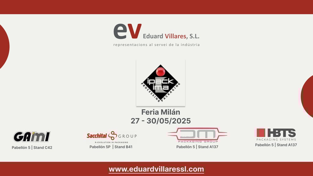 Estaremos como Eduard Villares SL en los stands de nuestras empresas expositoras (Gami, Dm Packaging, HBTS y Sacchital) y trataremos de resolver las dudas que se os presenten sobre temas de cualquiera de nuestras empresas representadas.